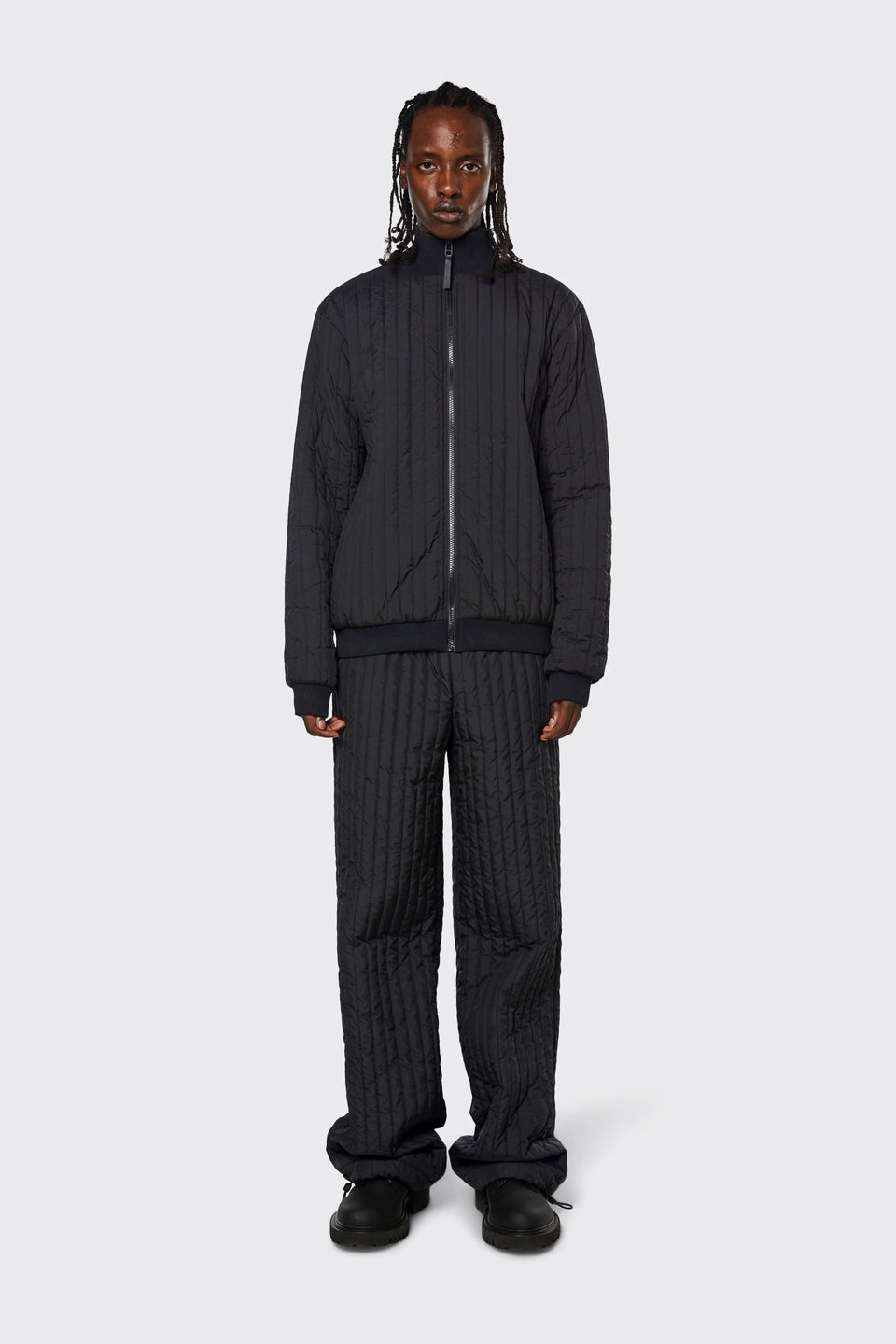 Liner High Neck Jacket is een veelzijdig jack voor het tussenseizoen dat onder buitenkleding of als lichte bovenlaag kan worden gedragen. Het niet-waterdichte gewatteerde jack wordt gekenmerkt door zijn hoge ribkraag en contrasterende bindritssluiting. Het artikel kan worden bevestigd aan kledingstukken uit de Essential Outerwear-collectie van Rains met de aan de achterkant bevestigde TPU-riem. Liner High Neck Jacket is afgewerkt met verborgen steekzakken en geribde zoom en manchetten. De moderne look combineert een strakke silhouet met verborgen details en dunne verticale stiksels.