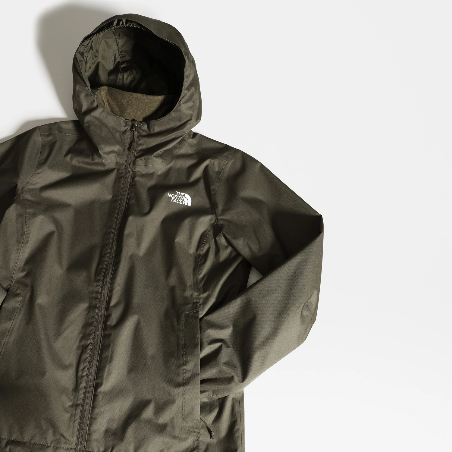 Kies voor een warme winter buiten de deur met de Quest jas van het hoogwaardige kwaliteitsmerk The North Face. Deze jas is gemaakt van lichtgewicht tweelaags DryVentโข-materiaal met getapete naden en een waterafstotende afwerking. Dit zorgt er allemaal voor dat u droog en beschermd bent tegen de wind en niet te warm en zweterig wordt, ideaal voor wandelingen in wisselende weersomstandigheden. De jas heeft een aansluitende, verstelbare capuchon, een trekkoord in de zoom en elastische manchetten om het slechte weer te weerstaan. Dankzij de geborstelde kinbescherming zal de bovenkant van de rits niet irriteren op de kin. De jas is daarnaast nog voorzien van steekzakken met rits sluiting.