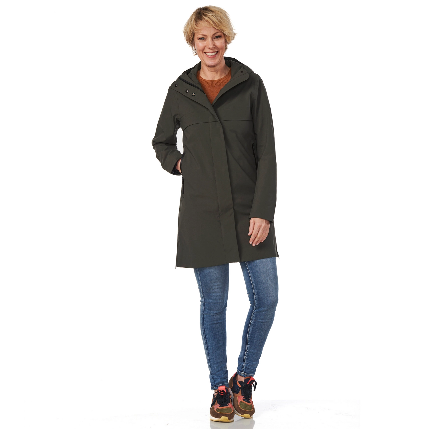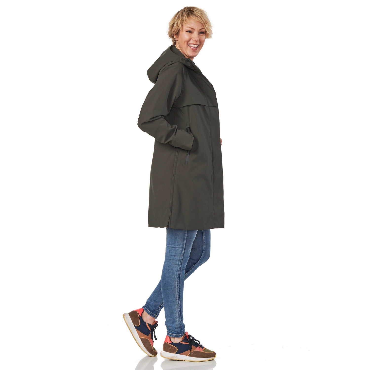 Deze fijne regenjas is afkomstig van de Florence serie van het merk Happy Rainy Days. De jas is gemaakt van 100% polyester van gecoate stretch kwaliteit. Hierdoor is de jas waterdicht, winddicht ademend en biedt de jas meer dan voldoende bewegingsvrijheid. De voorsluiting heeft een tweezijdige rits met knopen en de zijnaden zijn voorzien van twee ritsen. Hierdoor is deze jas ideaal voor op de fiets. Bovendien zijn de alle zakken van deze regenjas voorzien van waterdichte ritsen, waardoor uw spullen ook tijdens een regenbui droog blijven. Met de Florence regenjas loopt u er stijlvol, comfortabel en droog bij deze winter!
