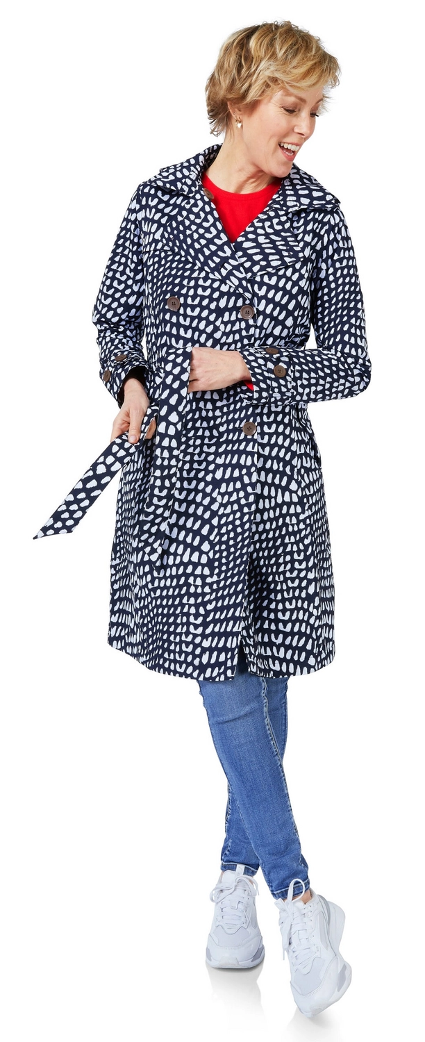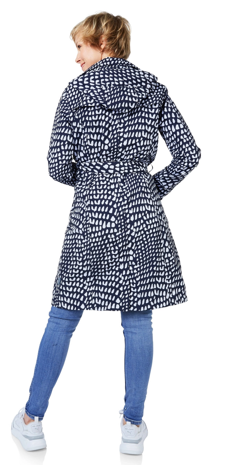 Deze stijlvolle regenjas is afkomstig uit de Geneve serie van het kwaliteitsmerk Happy Rainy Days. De regenjas heeft een buitenstof van nylon en een voering van polyester. Daarnaast is de jas voorzien van getapete naden waardoor deze jas water- en winddicht is. De regenjas beschikt over ademende eigenschappen waardoor het transpiratie tegen gaat. De jas heeft een verstelbare en afneembare capuchon. Verder is de jas voorzien van twee steekzakken en een voorsluiting met knopen. Als laatste heeft deze jas een ceintuur rond de middel om de jas te tailleren. Kortom, deze regenjas biedt een uitstekende bescherming tegen het Nederlandse weer en heeft tegelijkertijd een mooi model waarmee u ook gezien mag worden wanneer het niet regent.