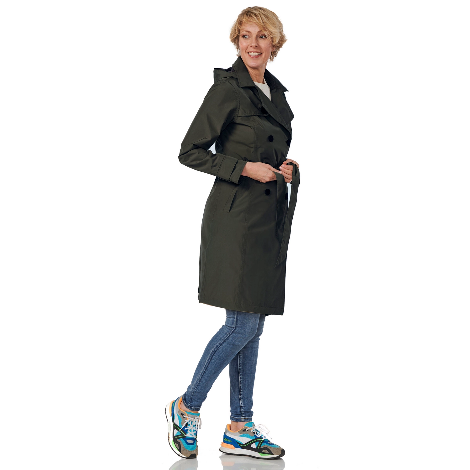 Deze modieuze regenjas is afkomstig van de Geneve serie van het merk Happy Rainy Days. De regenjas is in de stijl van een trenchcoat en is waterdicht, winddicht en ademend. Daarnaast zijn de naden getapet, waardoor u zeker weet dat u er comfortabel bij loopt tijdens regenbuien. De regenjas is voorzien van een afneembare capuchon en twee handige steekzakken. Verder heeft de jas een knoopsluiting wat zorgt voor een stijlvolle uitstraling. Bovendien is de jas voorzien van een ceintuur rond de middel voor een vrouwelijk silhouet. Deze regenjas is comfortabel en stijlvol en is ideaal voor het najaar en de winter!