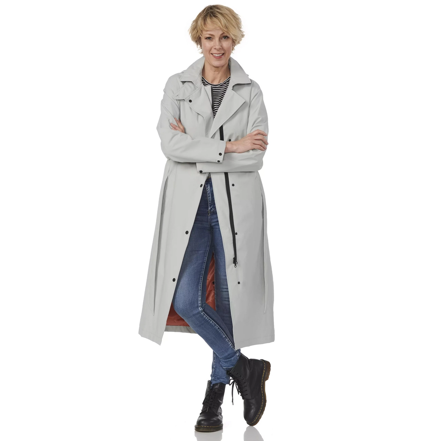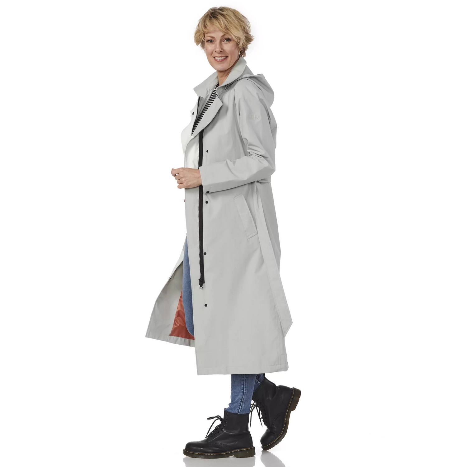 Deze Michigan regenjas van Happy Rainy Days heeft een charmante lange lengte en een tijdloze en trendy look. Hij reikt tot over de knie en is hierdoor ideaal voor dames die graag sporten (fietsen, wandelen), maar hun benen droog willen houden wanneer het regent. De band rond uw middel zorgt voor een vrouwelijke look. Ook is de Michigan regenjas perfect voor dames die vaak rokken dragen. De lange regenjas is winddicht, waterdicht en ademend. De voorsluiting heeft een mooie diagonale lijn en een rits en drukknopen als sluiting.