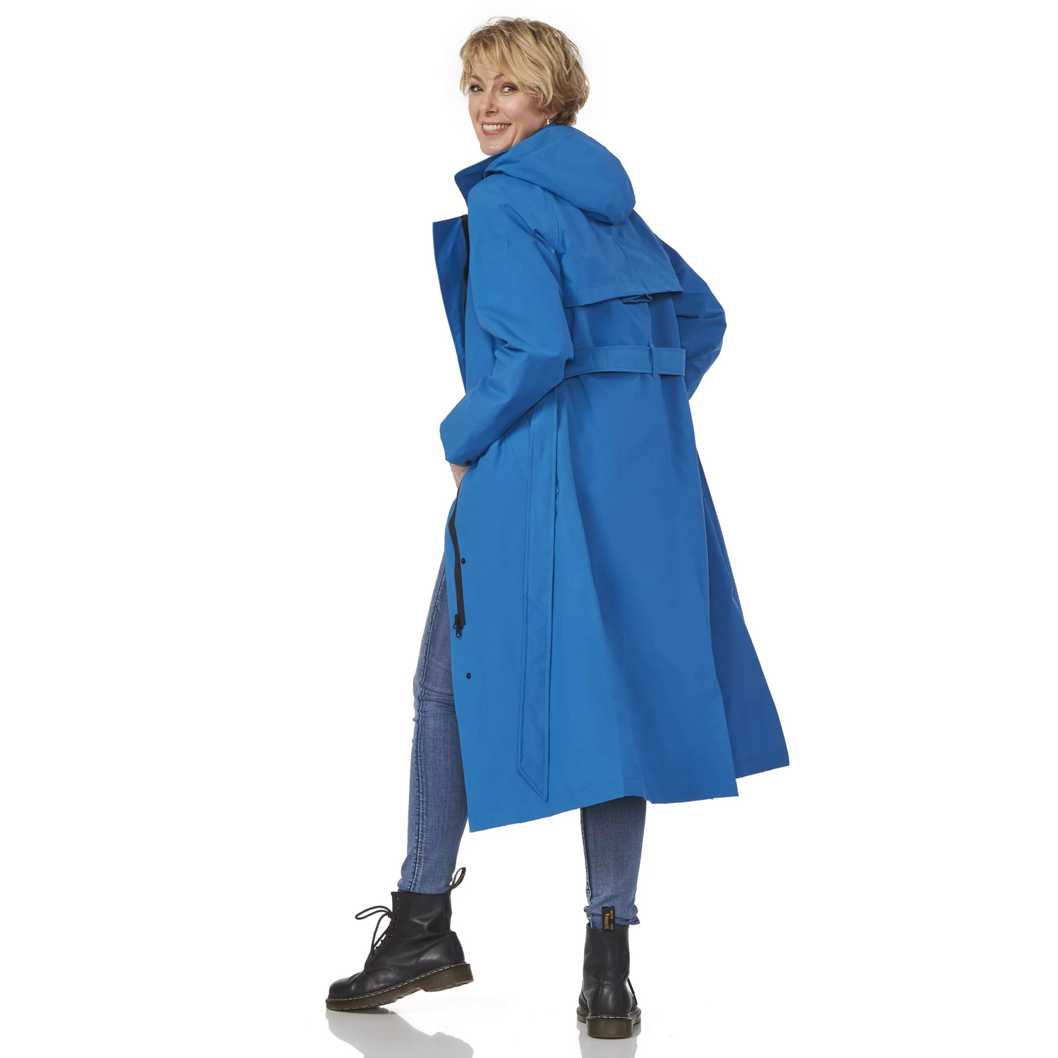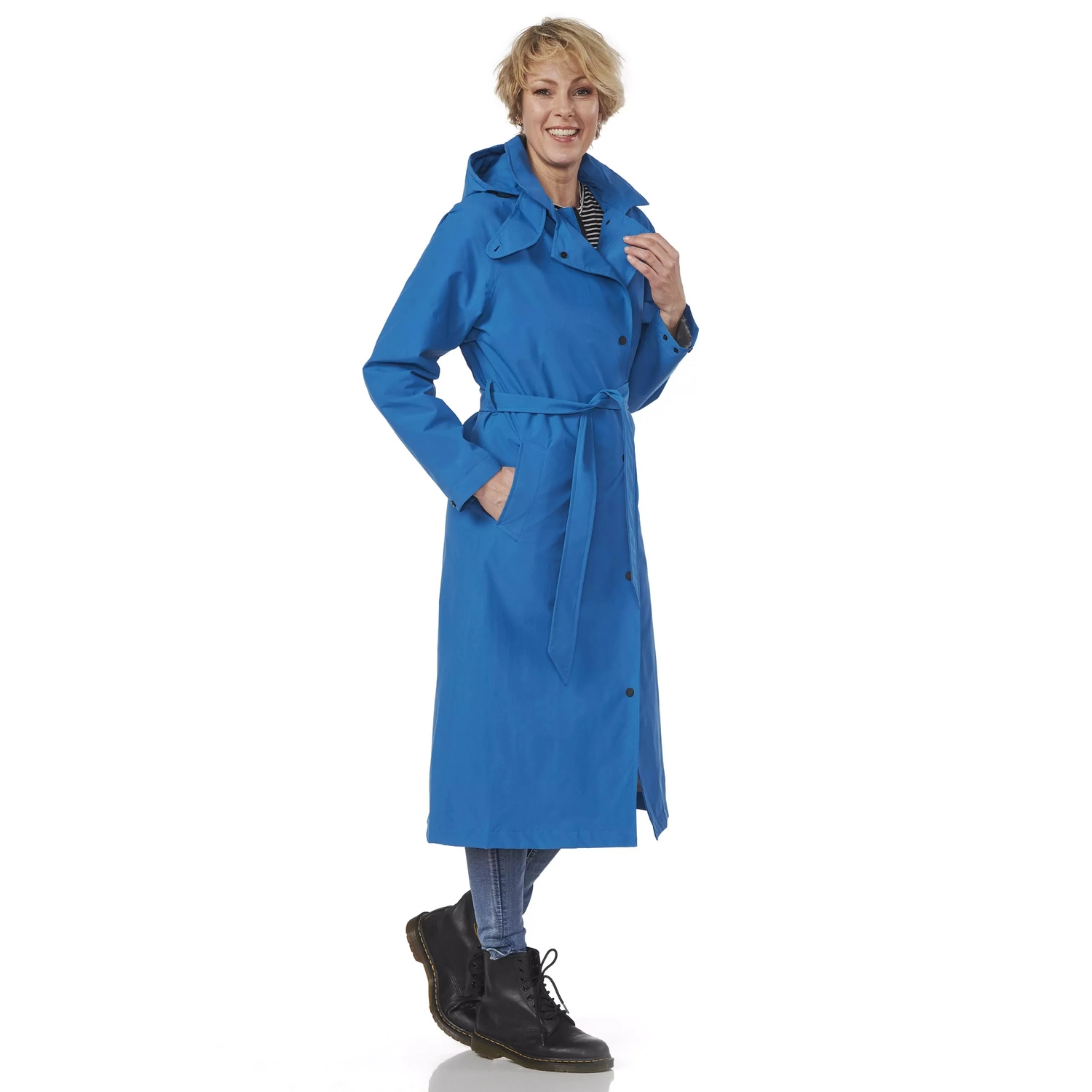 Deze Michigan regenjas van Happy Rainy Days heeft een charmante lange lengte en een tijdloze en trendy look. Hij reikt tot over de knie en is hierdoor ideaal voor dames die graag sporten (fietsen, wandelen), maar hun benen droog willen houden wanneer het regent. De band rond uw middel zorgt voor een vrouwelijke look. Ook is de Michigan regenjas perfect voor dames die vaak rokken dragen. De lange regenjas is winddicht, waterdicht en ademend. De voorsluiting heeft een mooie diagonale lijn en een rits en drukknopen als sluiting.
