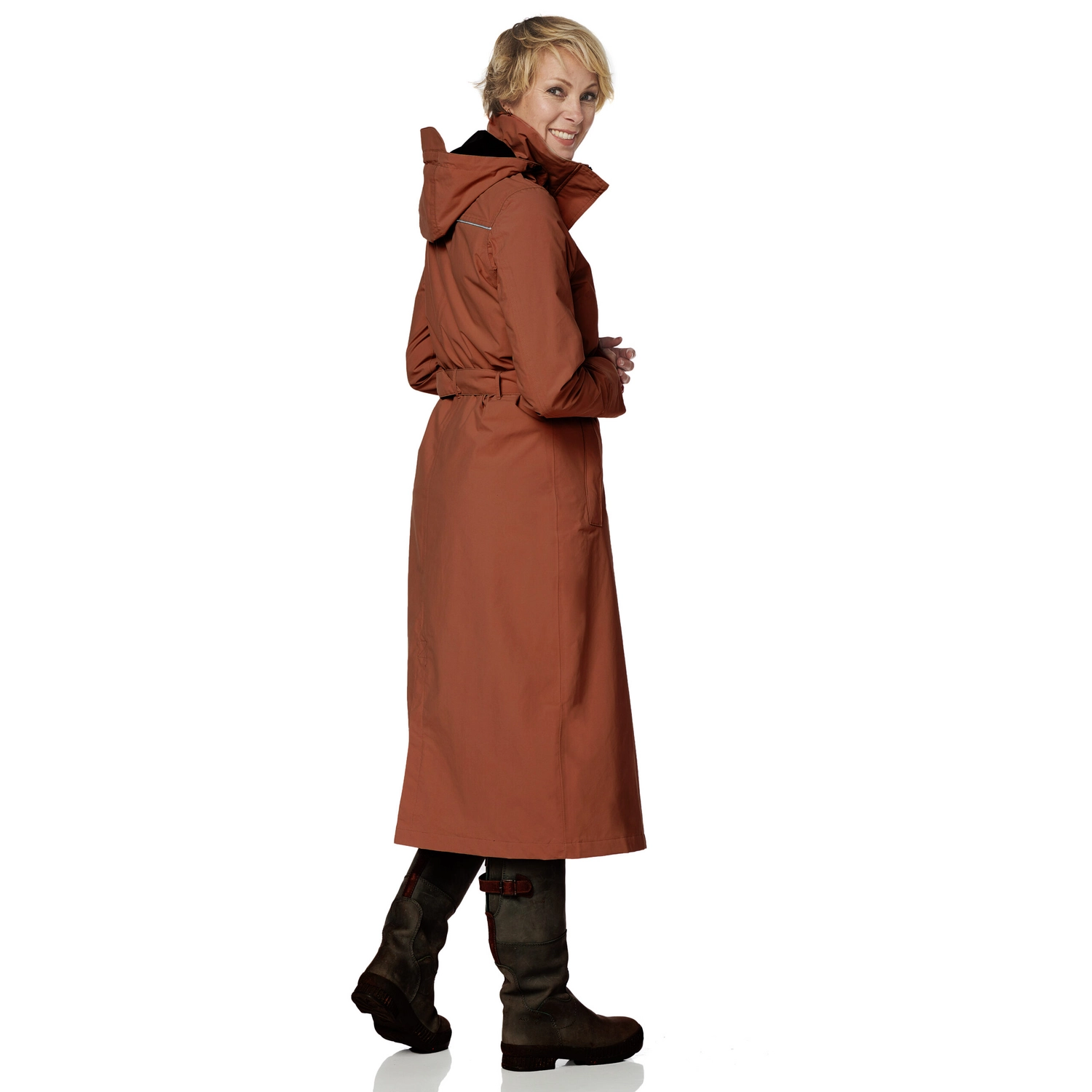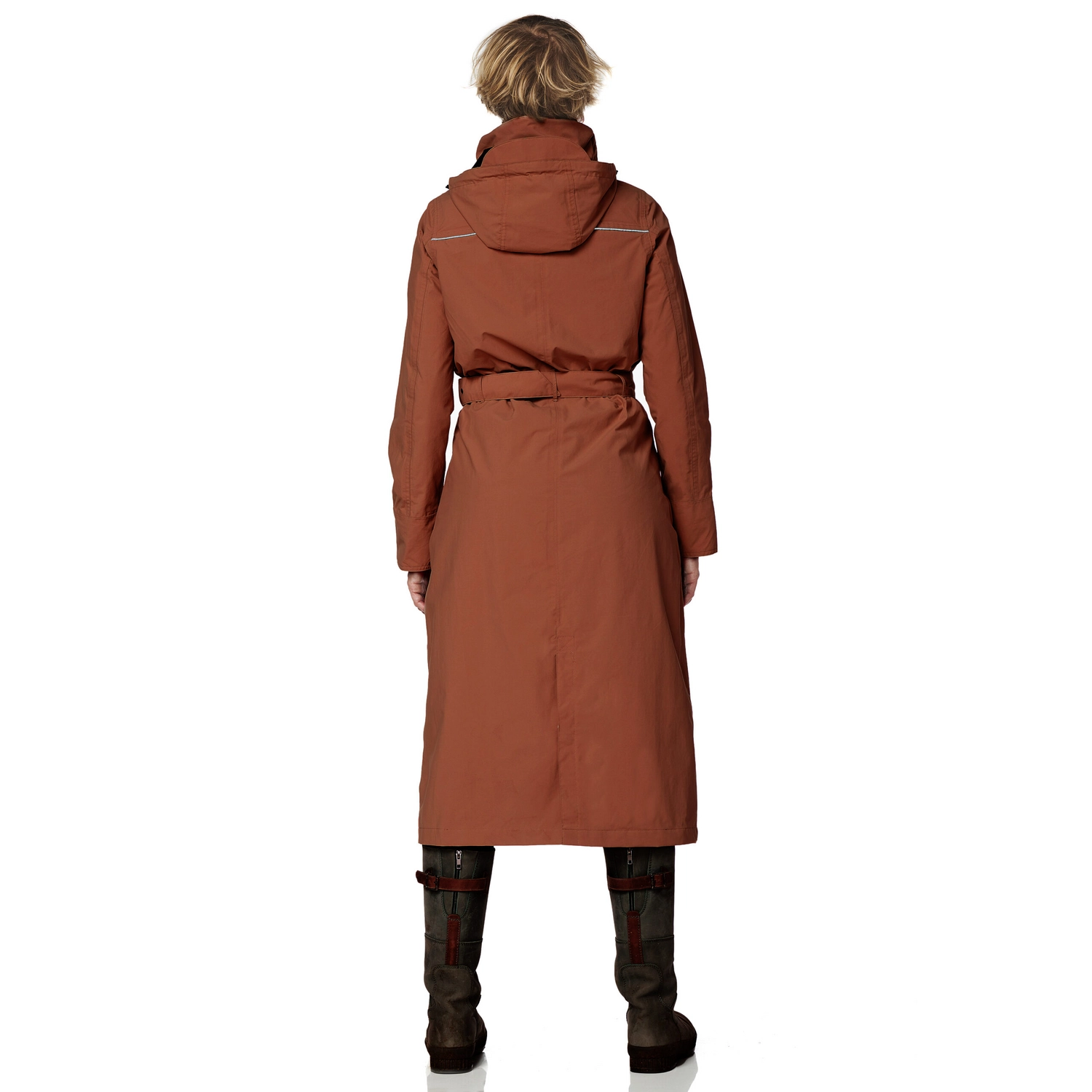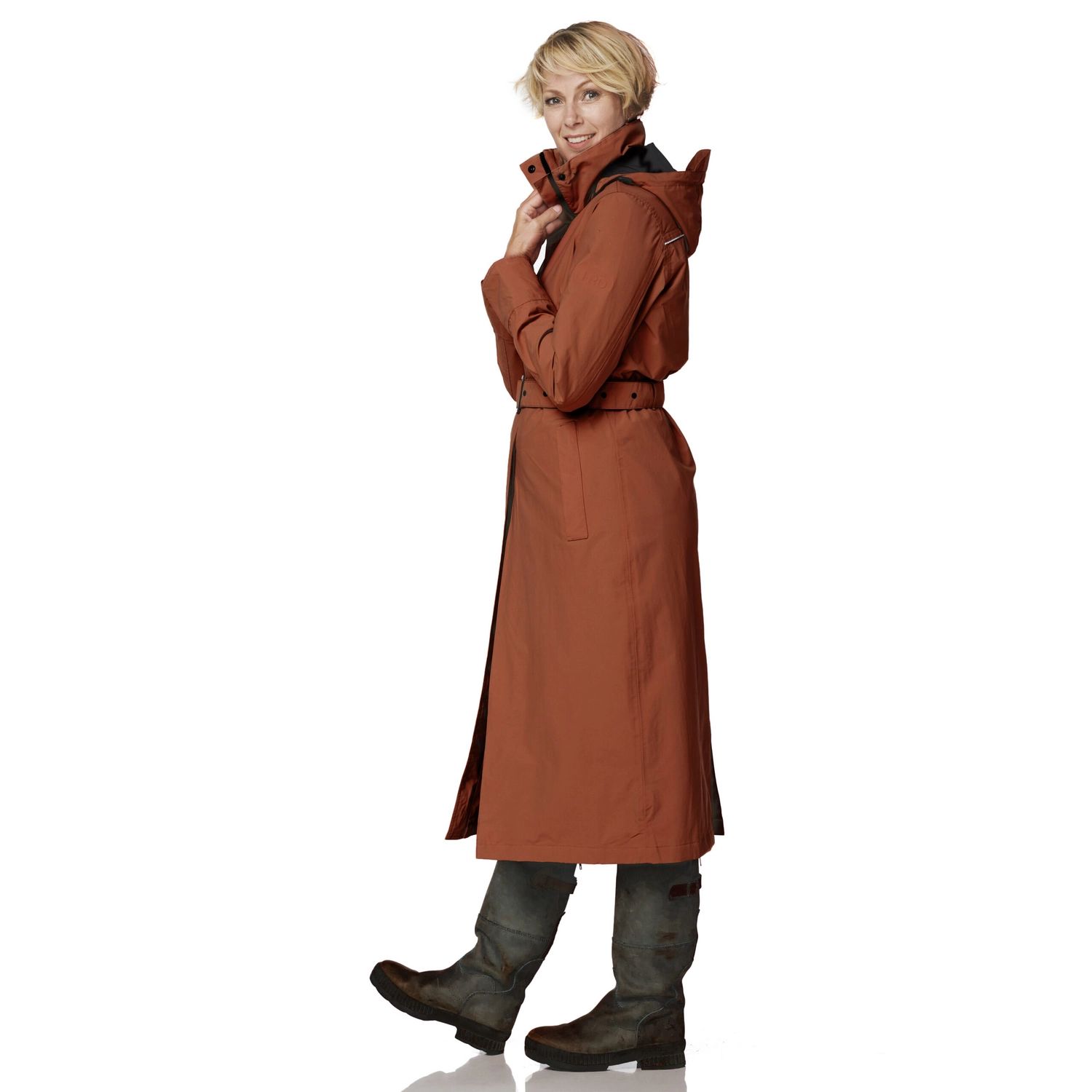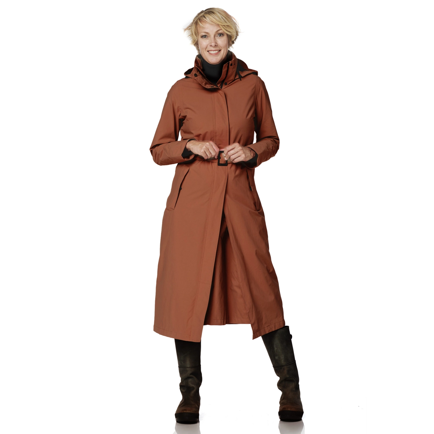 Deze super comfortabele regenjas is afkomstig van de Montreal serie van het merk Happy Rainy Days. Deze regenjas rijkt tot de enkels en heeft een stijlvolle silhouet. De jas is gemaakt van gecoat nylon. Hierdoor is de jas waterdicht, winddicht en zeer goed ademend. Daarnaast is de jas voorzien van een afneembare capuchon die op te rollen is in de kraag, waardoor u comfortabel de regenbuien kunt trotseren. Deze regenjas is voorzien van tussenstuk speciaal voor op de fiets. Door de flap die naar binnen geritst kan worden, heeft u extra bewegingsruimte en blijven uw benen droog tijdens het fietsen of wandelen. Verder is de jas voorzien van een ritssluiting met drukknopen en hebben de zakken een ritssluiting. Bovendien heeft de jas een ceintuur met gesp, waardoor u de jas vrouwelijk kan tailleren. De Montreal regenjas is een echte musthave voor het najaar en de winter!