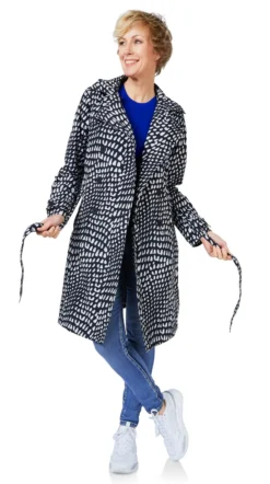 De prachtige Trenchcoat regenjas komt uit de collectie van het merk Happy Rainy Days. De jas heeft een shell die vervaardigd is van 100% nylon, de 100% katoenen voering zorgt voor extra draagcomfort. De jas is voorzien van een speciale coating waardoor de jas winddicht, volledig waterdicht en tegelijkertijd goed ademend is. De jas is voorzien van getapete naden waardoor waterdichtheid over de gehele jas is gegarandeerd. De trenchcoat is voorzien van een regular fit pasvorm en valt tot boven de knie. De jas heeft een elegante ceintuur waarmee u de taillering naar eigen wens kunt aanpassen. De jas heeft een afneembare en verstelbare capuchon en is aan beide zijkanten voorzien van diepe steekzakken. De jas is mooi afgewerkt door de dubbele rij knopen waardoor de jas een elegante uitstraling krijgt.