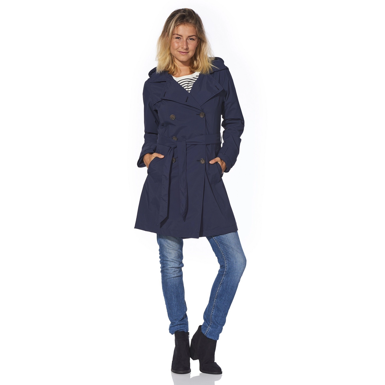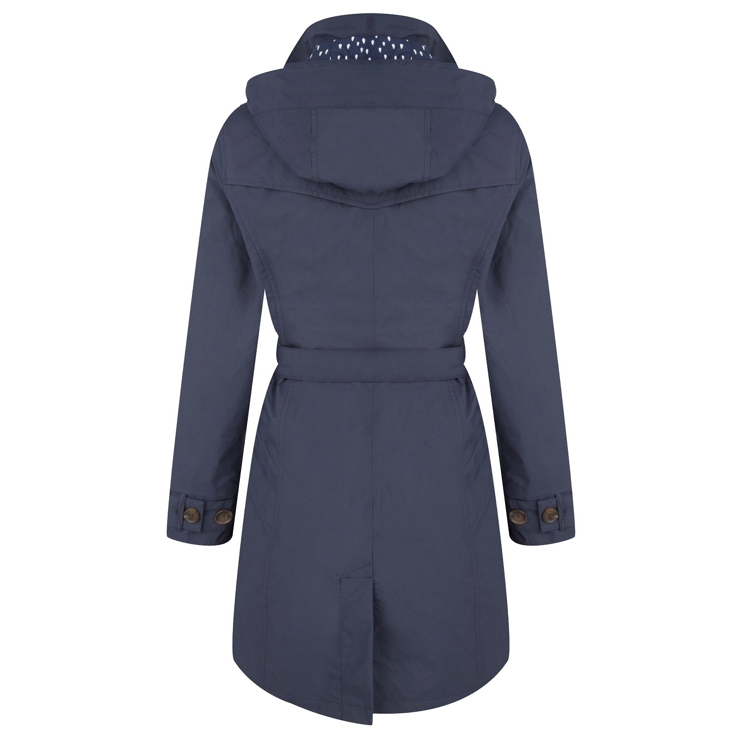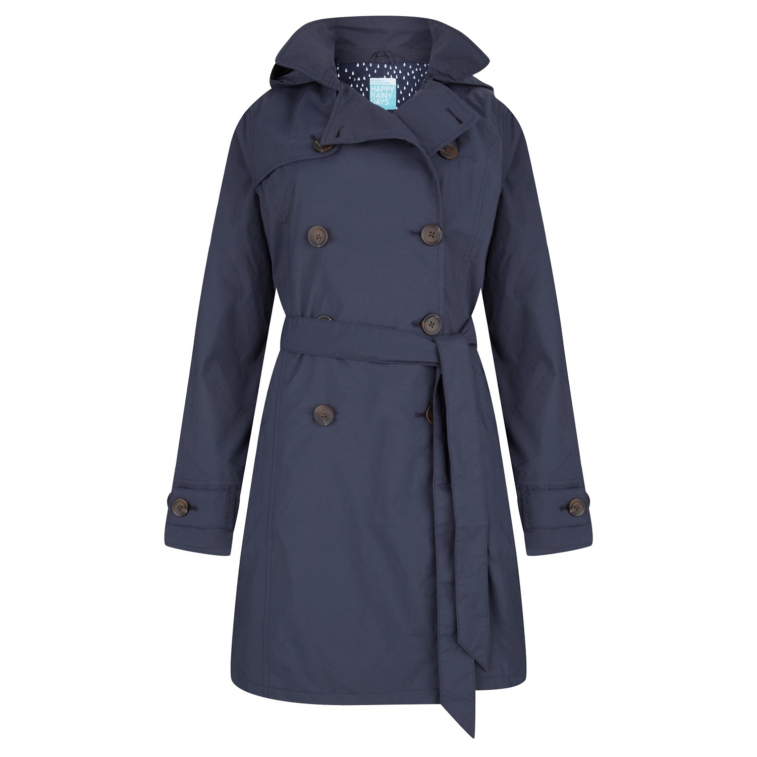 Op zoek naar een stijlvolle jas die u beschermd tegen stevige windstoten en heftige regenbuien. Kijk dan niet verder want dan is dit de perfecte regenjas voor u. De Trenchcoat van Happy Rainy Days beschikt over een aantal prettige eigenschappen: zo heeft de jas een afneembare verstelbare capuchon, verstelbare lange mouwen en 2 steekzakken aan de voorkant. Natuurlijk is de jas waterdicht maar daarnaast ook ademend. De speelse knopen en het ceintuur om de taille geven de jas een vrouwelijk touch.