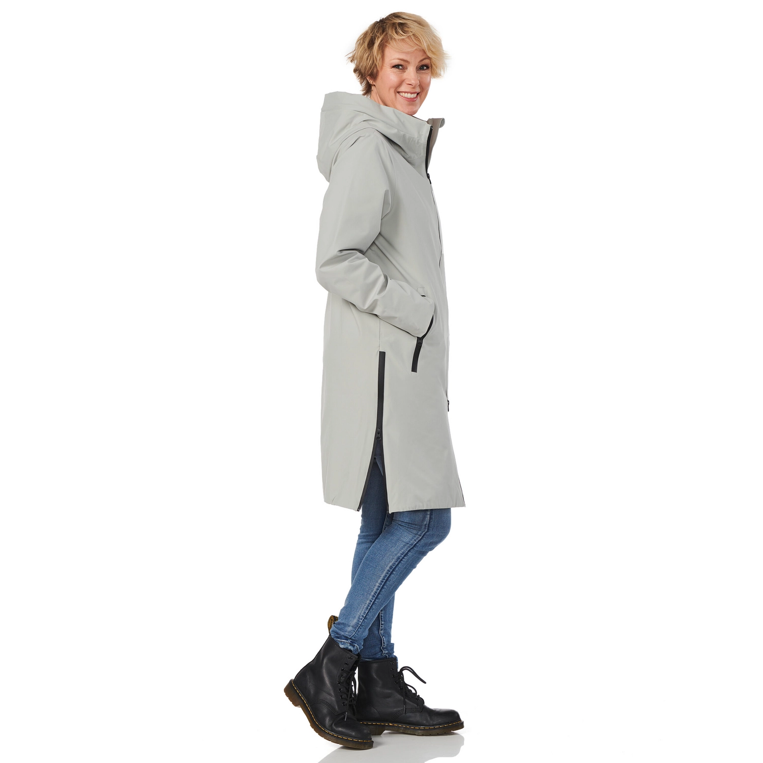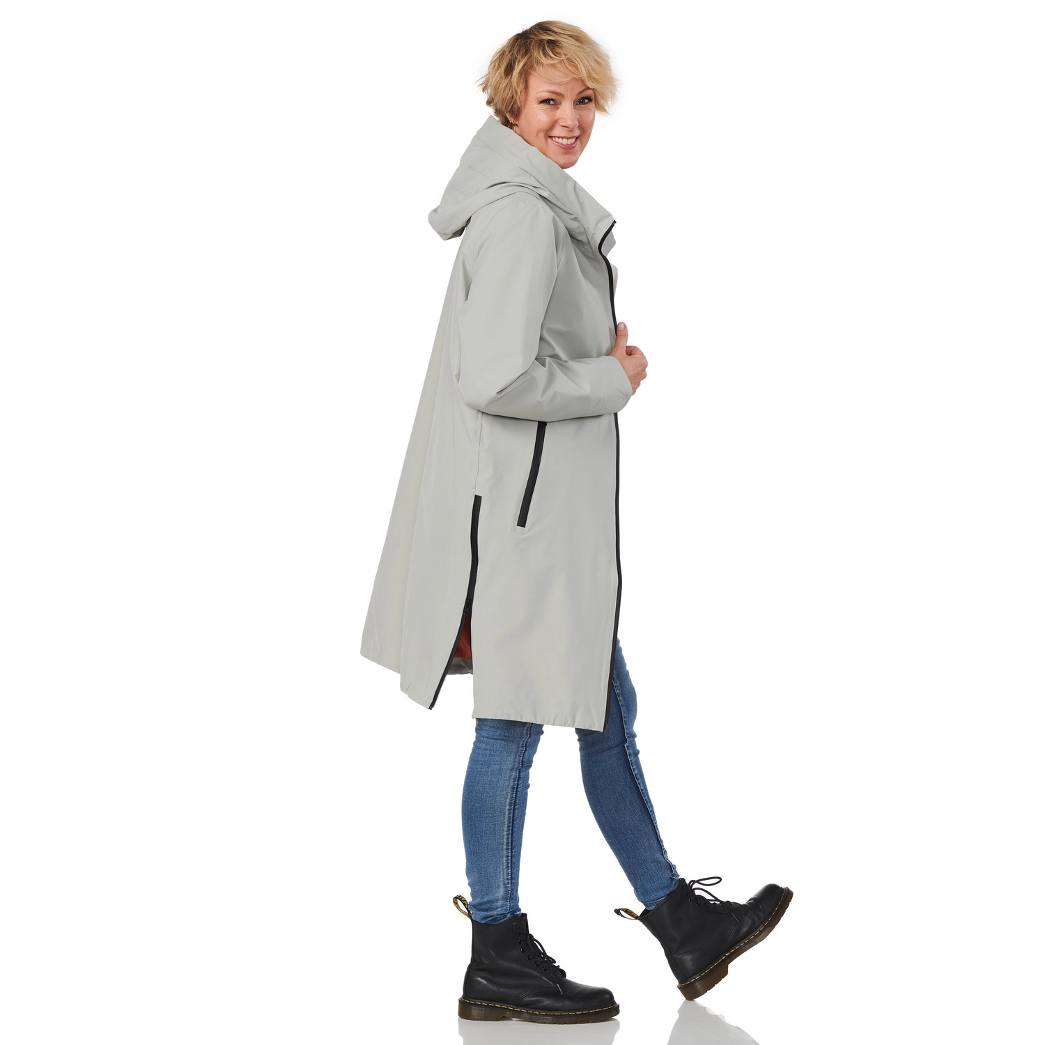 Deze fijne regenjas is afkomstig van de Venice serie van het merk Happy Rainy Days. De jas is gemaakt van 100% polyester en de buitenzijde is van gecoate stretchkwaliteit. Hierdoor is de jas niet alleen waterdicht en winddicht, maar ook nog eens ademend en erg comfortabel is om te dragen. Daarnaast is de jas voorzien van een tweezijdige ritssluiting en twee ritsen in de zijnaad. Alle ritsen zijn waterdicht gecoat, waardoor u er zeker van bent dat uw spullen ook niet nat worden. Bovendien is de jas voorzien van een verstelbare capuchon, zodat u er ook bij slecht weer comfortabel bij loopt.