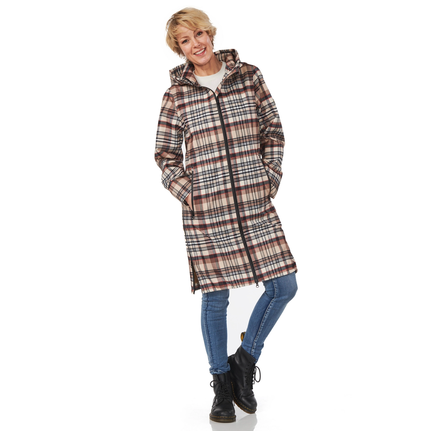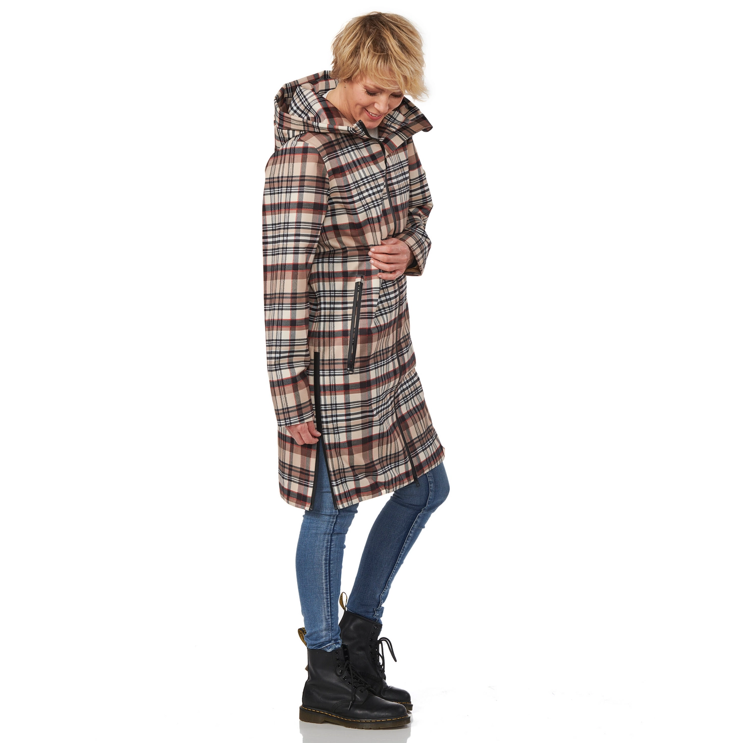 Deze fijne regenjas is afkomstig van de Venice serie van het merk Happy Rainy Days. De jas is gemaakt van 100% polyester en de buitenzijde is van gecoate stretchkwaliteit. Hierdoor is de jas niet alleen waterdicht en winddicht, maar ook nog eens ademend en erg comfortabel is om te dragen. Daarnaast is de jas voorzien van een tweezijdige ritssluiting en twee ritsen in de zijnaad. Alle ritsen zijn waterdicht gecoat, waardoor u er zeker van bent dat uw spullen ook niet nat worden. Bovendien is de jas voorzien van een verstelbare capuchon, zodat u er ook bij slecht weer comfortabel bij loopt.