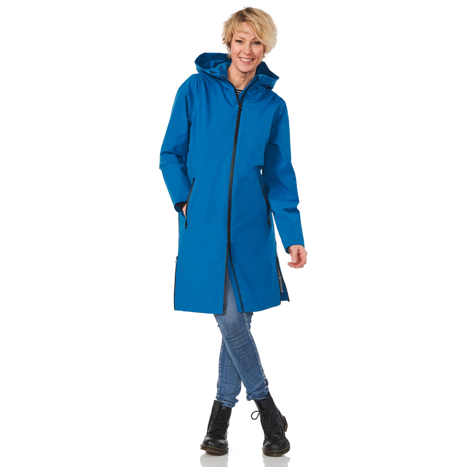 Deze fijne regenjas is afkomstig van de Venice serie van het merk Happy Rainy Days. De jas is gemaakt van 100% polyester en de buitenzijde is van gecoate stretchkwaliteit. Hierdoor is de jas niet alleen waterdicht en winddicht, maar ook nog eens ademend en erg comfortabel is om te dragen. Daarnaast is de jas voorzien van een tweezijdige ritssluiting en twee ritsen in de zijnaad. Alle ritsen zijn waterdicht gecoat, waardoor u er zeker van bent dat uw spullen ook niet nat worden. Bovendien is de jas voorzien van een verstelbare capuchon, zodat u er ook bij slecht weer comfortabel bij loopt.