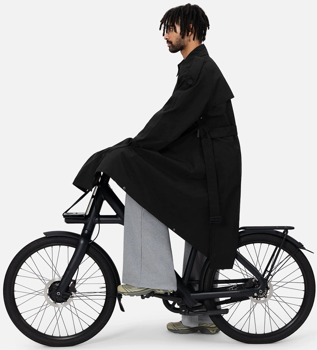 Deze Trenchcoat is een volledig waterdichte regenjas van het merk Maium die ontworpen is om in te bewegen. Met zijn oversized pasvorm weerspiegelt het zijn eerste introductie in 1901. De trenchcoat kan gemakkelijk veranderen in een poncho voor op fiets of scooter. Verder is de coat gemaakt van biologisch katoen en 111 gerecyclede plastic flessen. Uiteraard was dit nog niet alles. Zo zijn de getapete naden volledig waterdicht, is de coat uitgerust met een hoge kraag en is de stof waterdicht (3.000 mm) en ademend (3.000 g/m2).