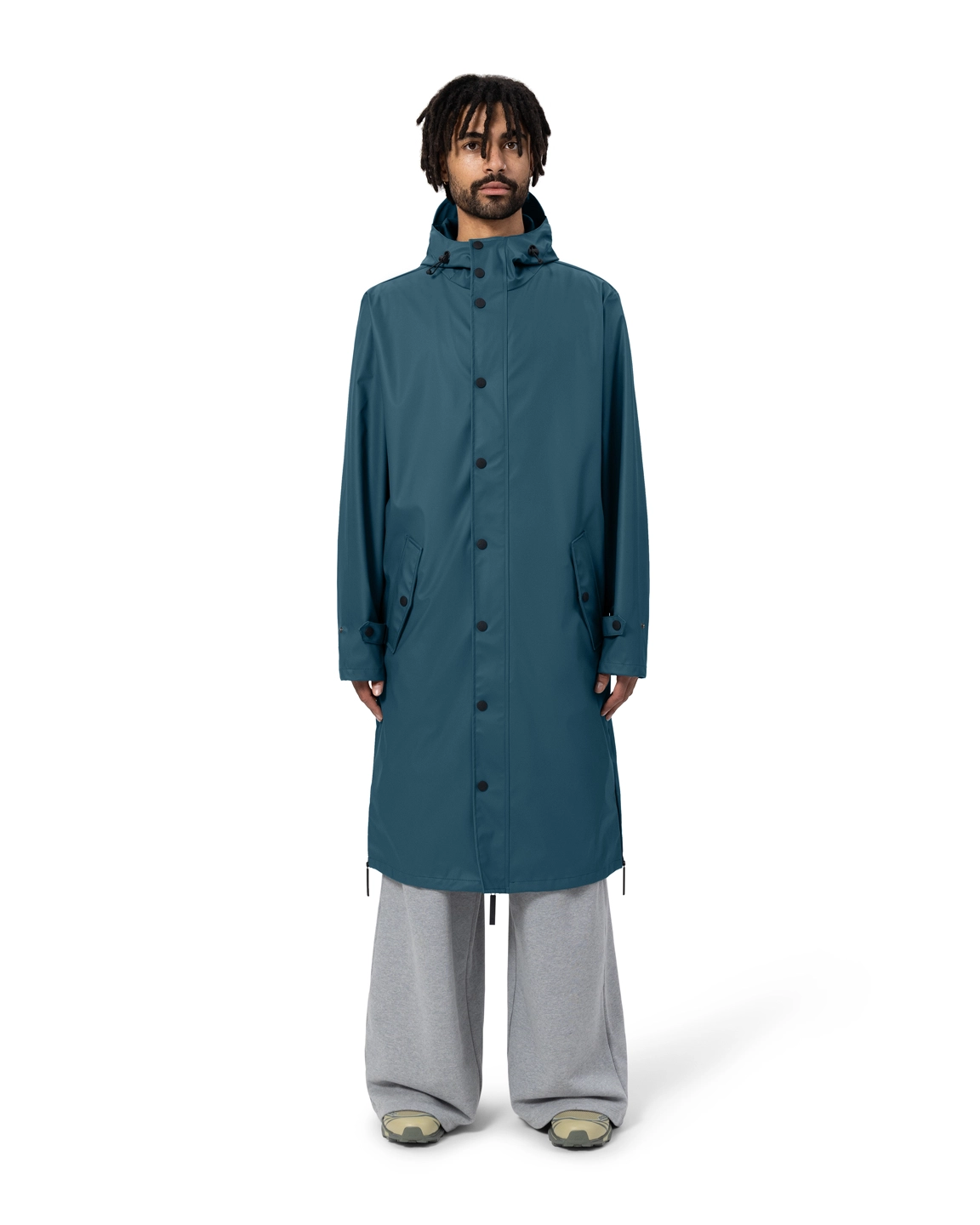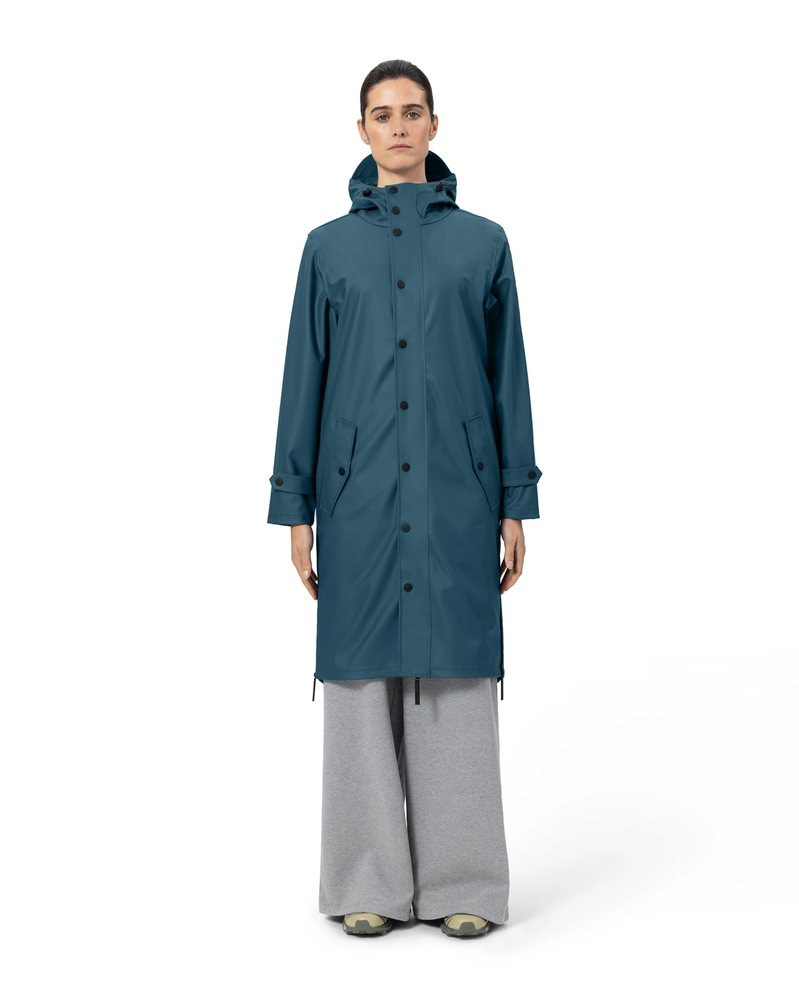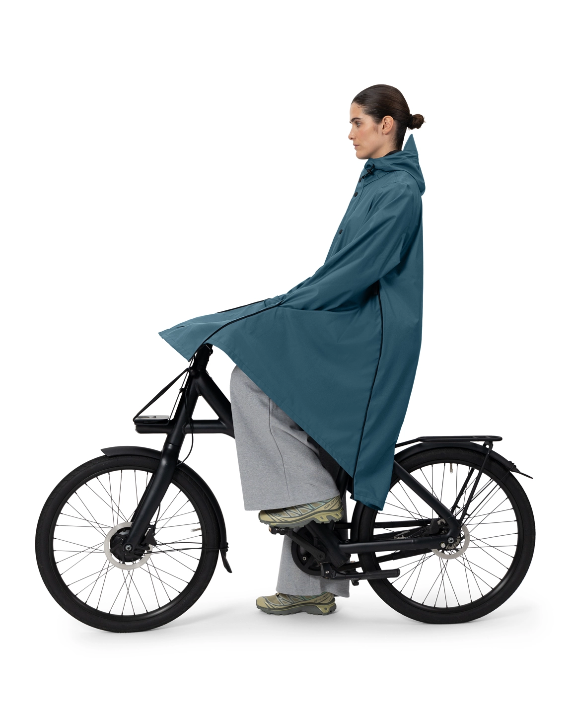 - Kenmerkende ritsen aan zijkant voor poncho functie