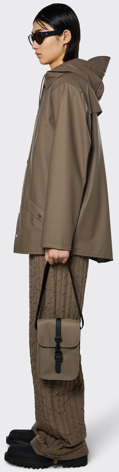 De RAINS Jacket is een stijlvolle en waterdichte regenjas, die ervoor zorgt dat u droog blijft zonder dat u een klam gevoel krijgt. Deze jas is gemaakt van een sterke combinatie van 50% Polyester, 50% Polyurethaan. Dit zorgt er voor dat de jas zeer sterk en duurzaam is. De gesealde naden in combinatie met de materiaalkeuze zorgen er voor dat de jas waterdicht is tot een waterdruk van 6000 mm. Het ademende aspect van de jas vindt u terug in de verschillende ventilatiegaten, verborgen onder de flap aan de achterzijde en de oksels. Zo blijft uw lichaam goed op temperatuur. De jas heeft een verstelbare capuchon en kan gesloten worden door middel van drukknopen aan de voorzijde. De jas heeft twee met druk knopen afsluitbare zakken aan de voorzijde van de jas. De jas is niet alleen functioneel maar ook erg stijlvol. Zo loopt u er in de regen ook nog modieus bij!