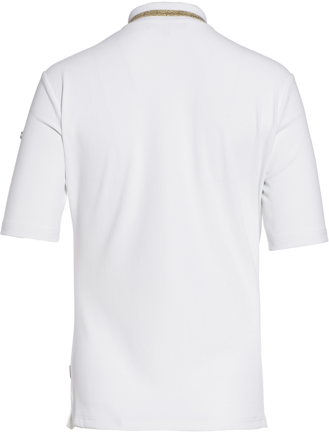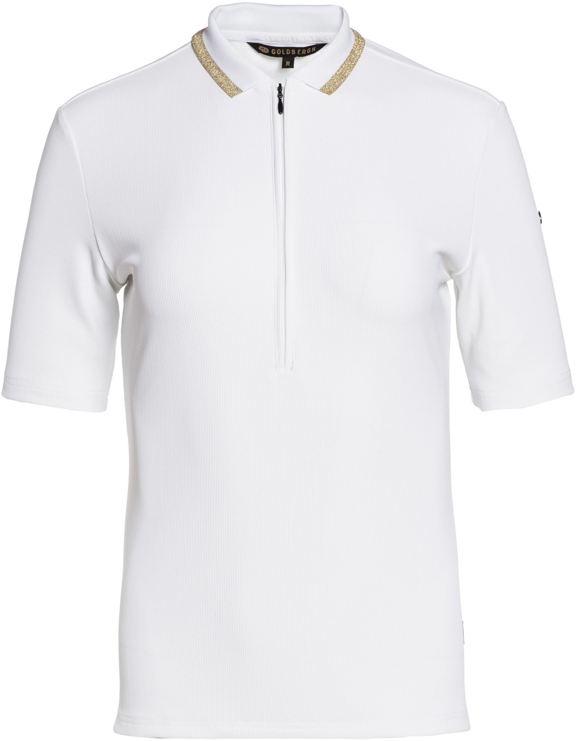 Dit T-shirt is afkomstig uit de Cassia serie van het merk Goldbergh. Het materiaal van dit Slim Fit T-shirt bestaat uit 80% polyamide en 20% elastaan, wat het T-shirt sneldrogend, vochtregulerend en vrij van geurtjes maakt. Daarnaast is dit T-shirt voorzien van een 2×2 gestructureerde rib, een verborgen 1/2 ritssluiting en ventilatie-openingen aan de zijkant. U kunt de Cassia herkennen aan het geweven merklabel aan de zijkant en de ribpolokraag met goudkleurige lurex rand.