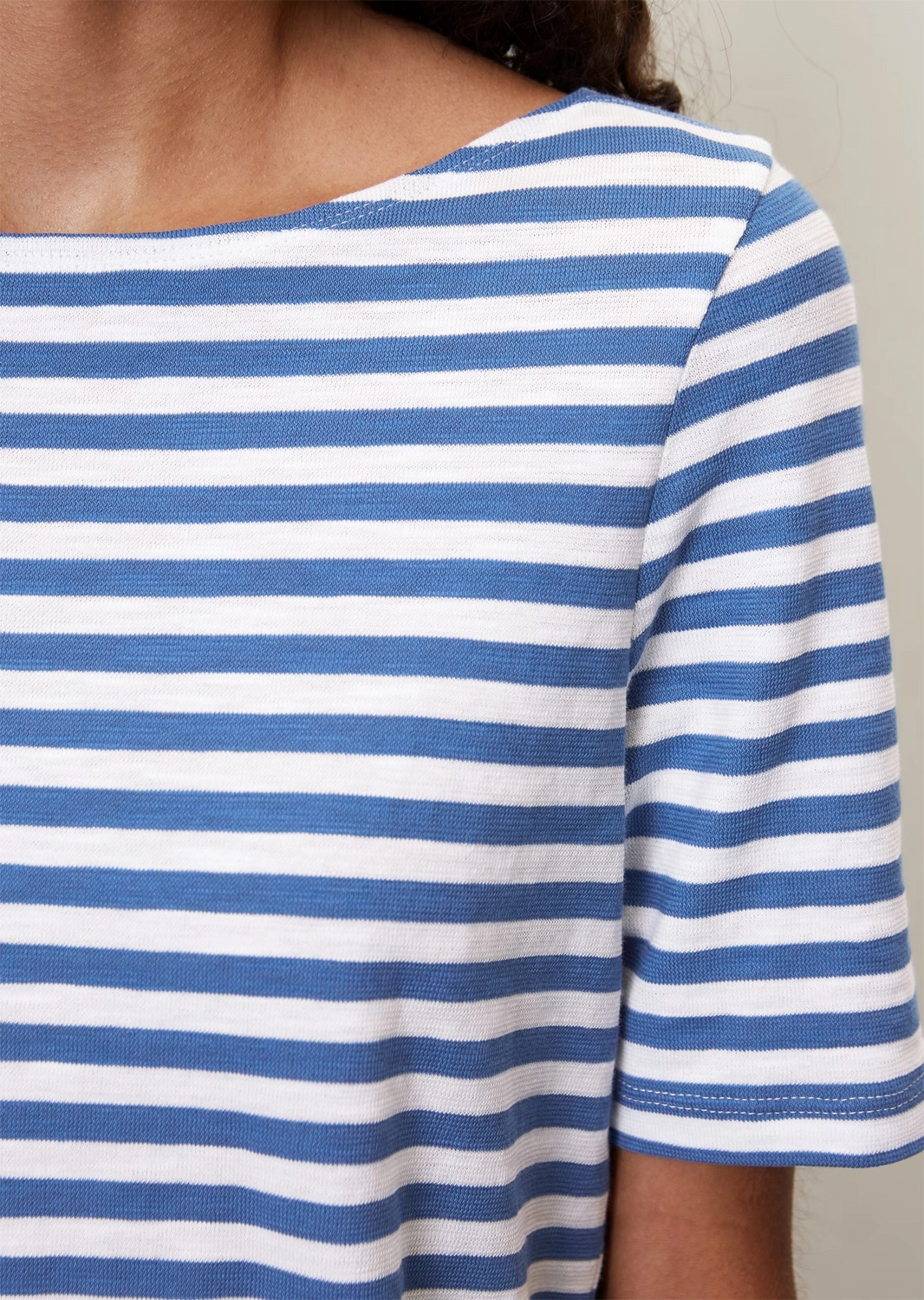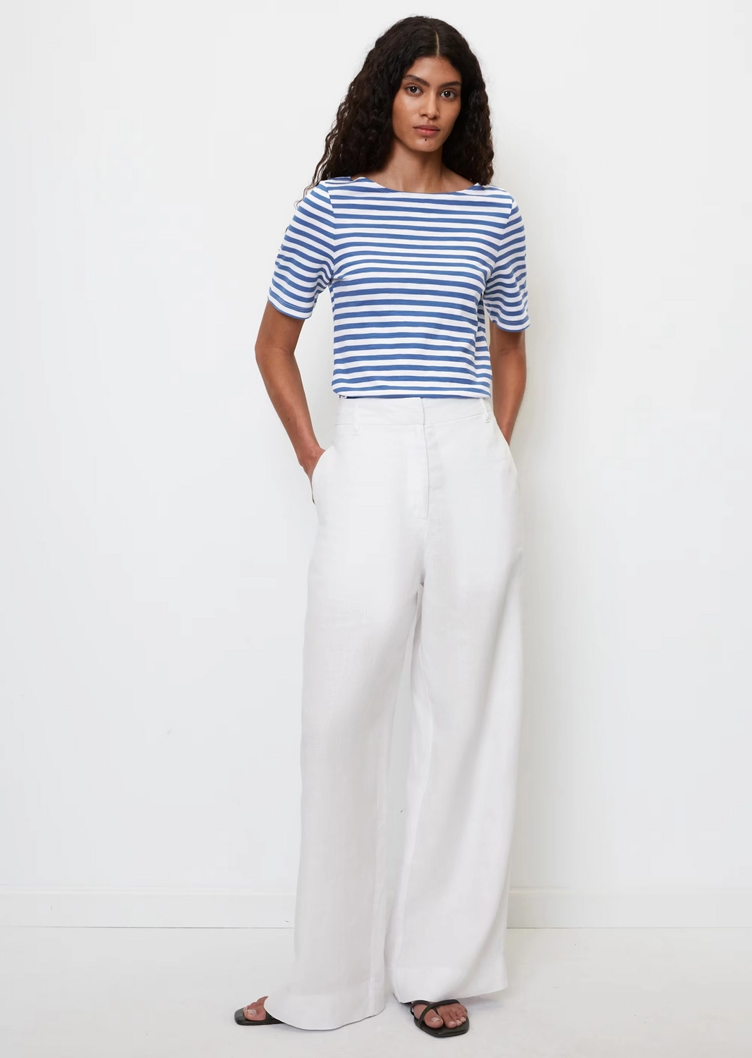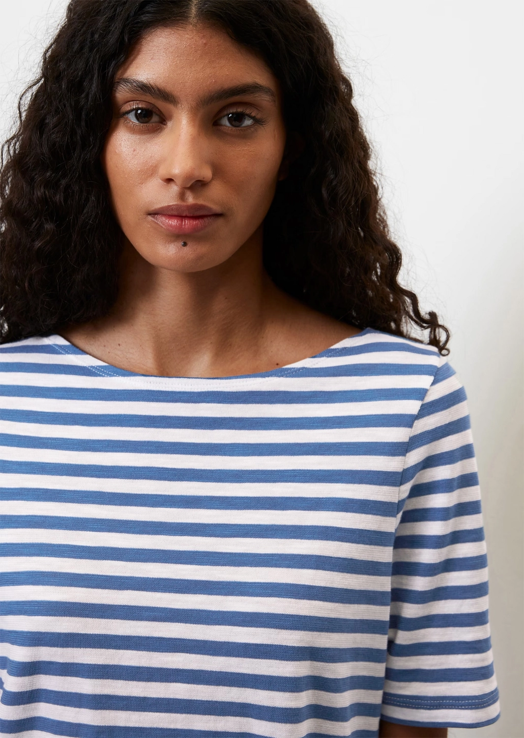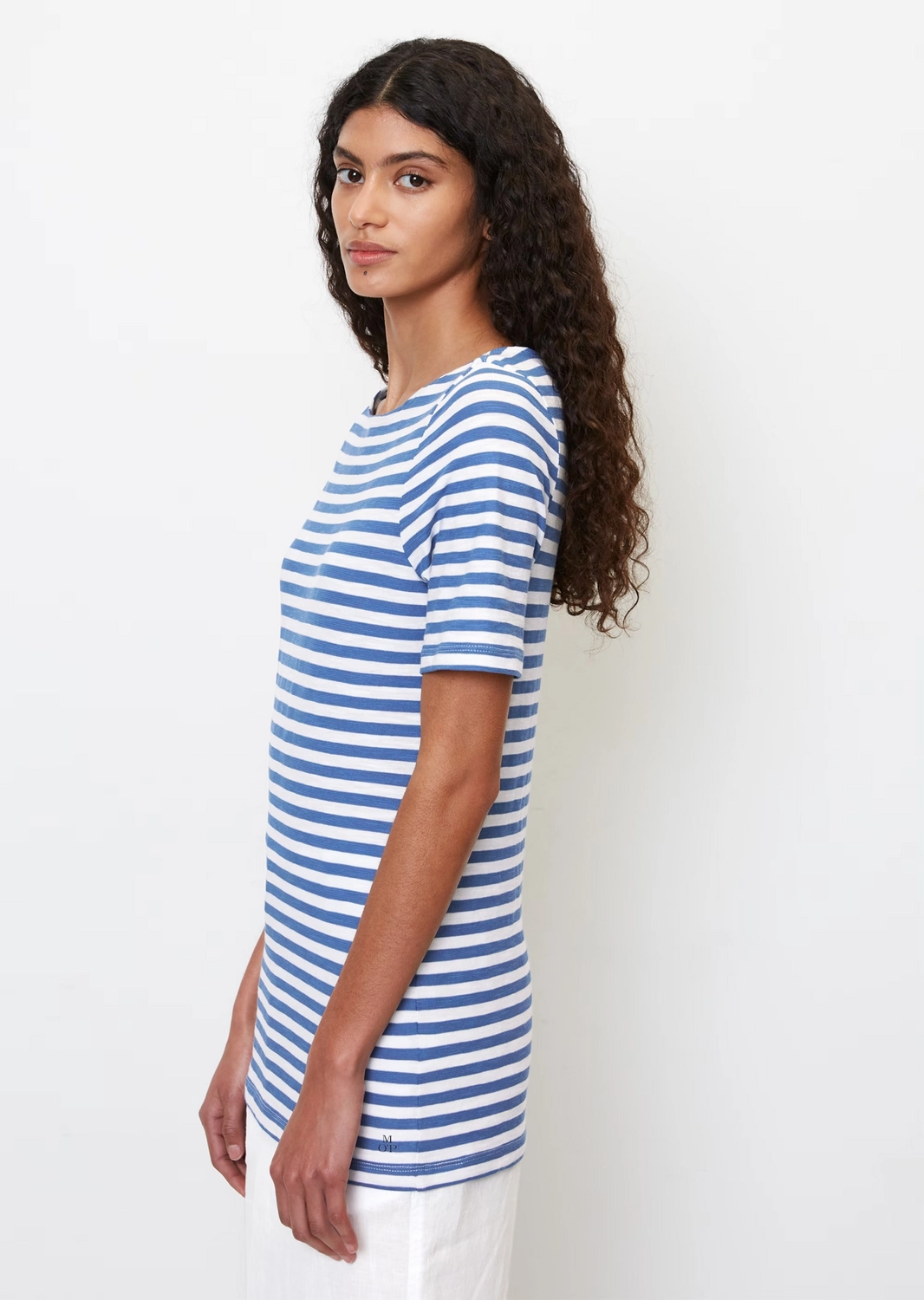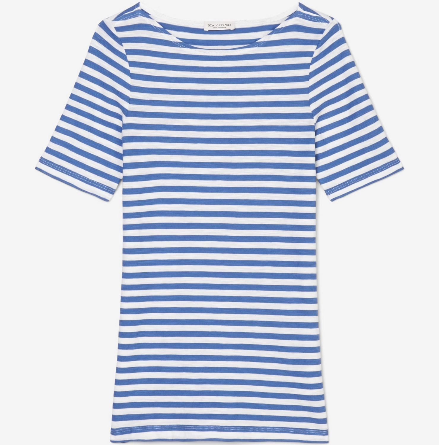 Dit prachtige T-shirt voor dames van Marc O’Polo is een must-have voor de modebewuste vrouw. Het shirt heeft een comfortabele en vrouwelijke slim fit pasvorm en een elegante boothals. De horizontale strepen in de geven het shirt een speelse en stijlvolle uitstraling. Het shirt is gemaakt van 100% katoen en heeft het GOTS-keurmerk, wat betekent dat het op een duurzame en milieuvriendelijke manier is geproduceerd. Dit T-shirt is perfect voor een casual gelegenheden en is gemakkelijk te combineren. Met dit T-shirt bent u verzekerd van een comfortabele en modieuze look.